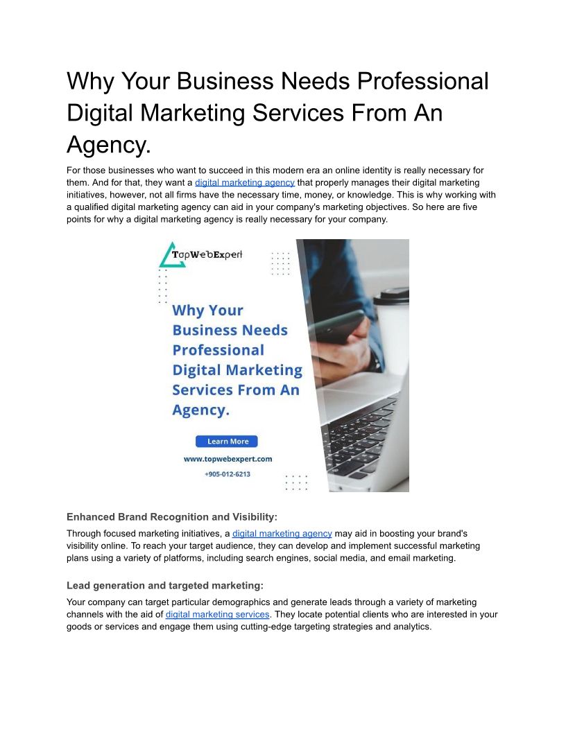 Why Your Business Needs Professional Digital Marketing Services from an Agency
