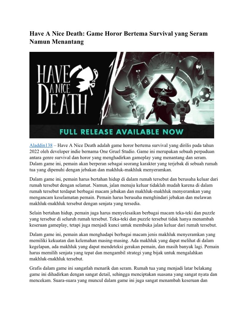Have A Nice Death: Game Horor Bertema Survival yang Seram Namun Menantang