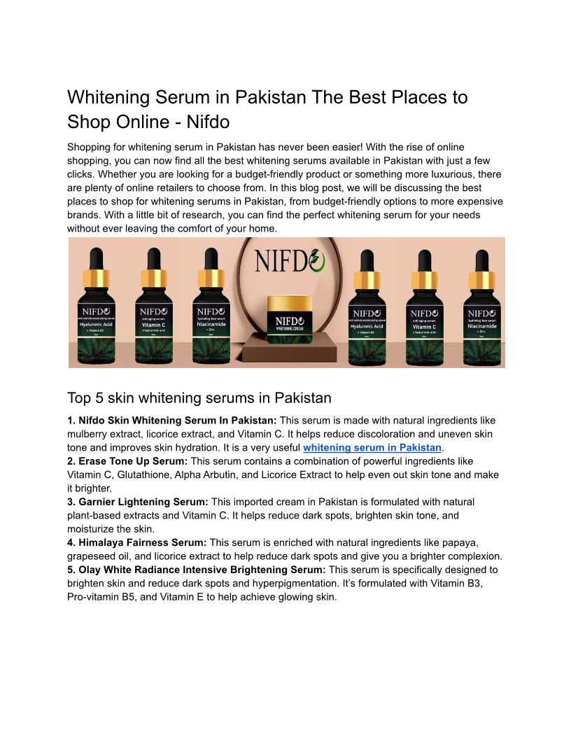 Whitening Serum in Pakistan The Best Places to Shop Online - Nifdo