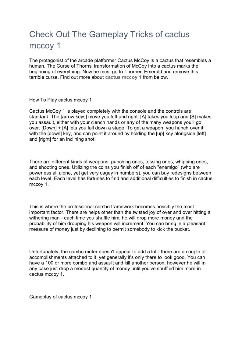Check Out The Gameplay Tricks of cactus mccoy