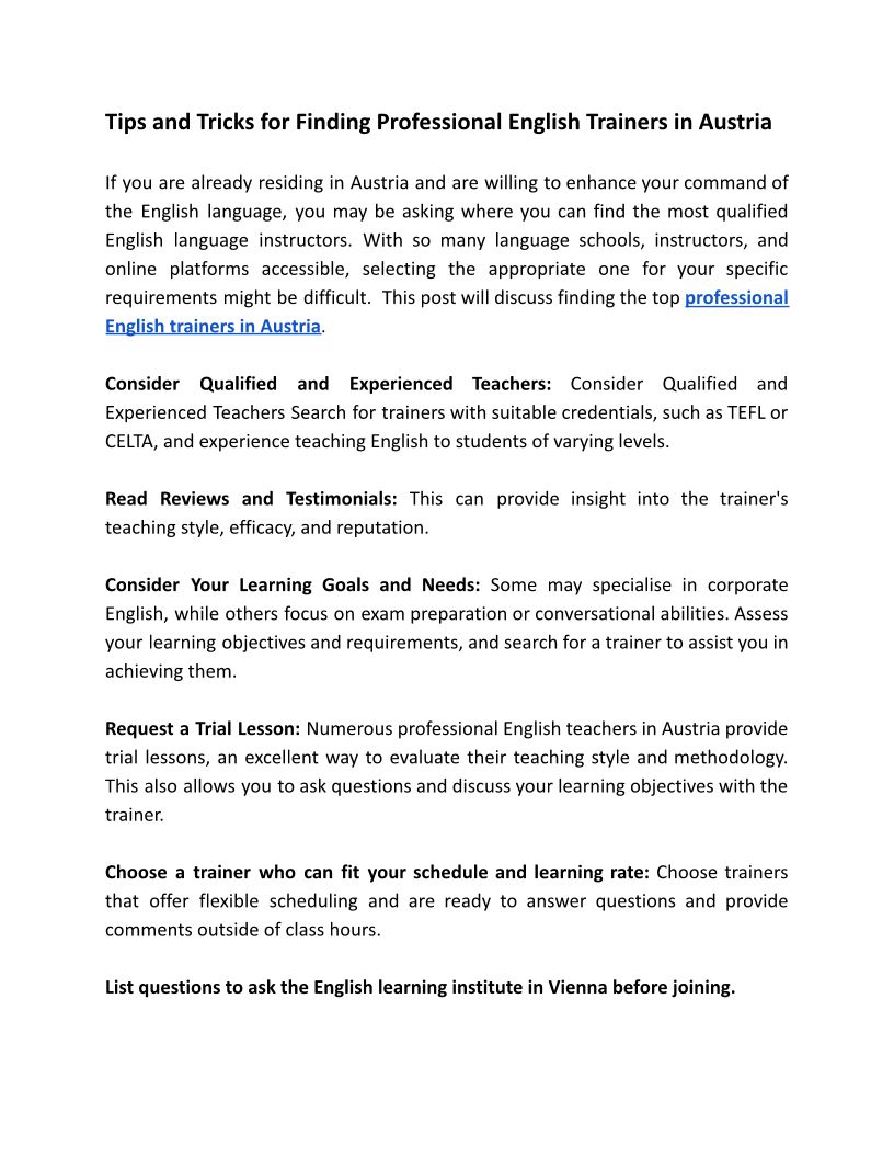 Tips and Tricks for Finding Professional English Trainers in Austria