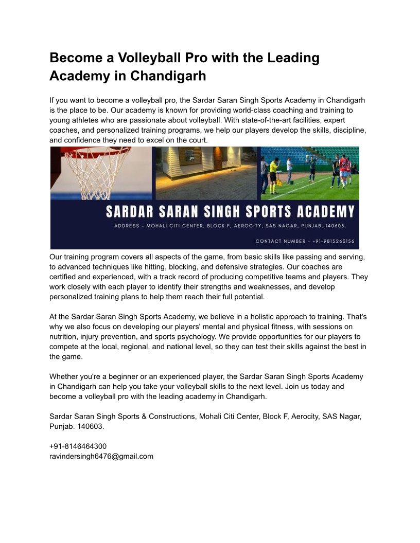 Become a Volleyball Pro with the Leading Academy in Chandigarh