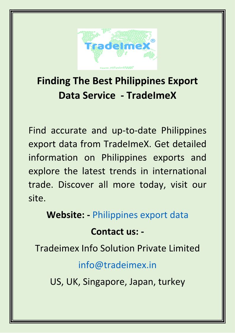 Finding The Best Philippines Export Data Service - TradeImeX