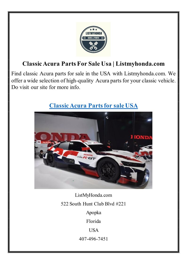 Classic Acura Parts For Sale Usa Listmyhonda