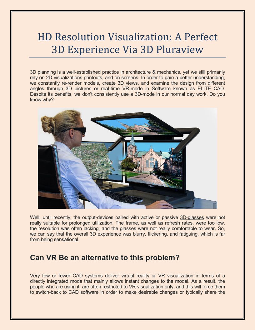 HD Resolution Visualization - A Perfect 3D Experience Via 3D Pluraview