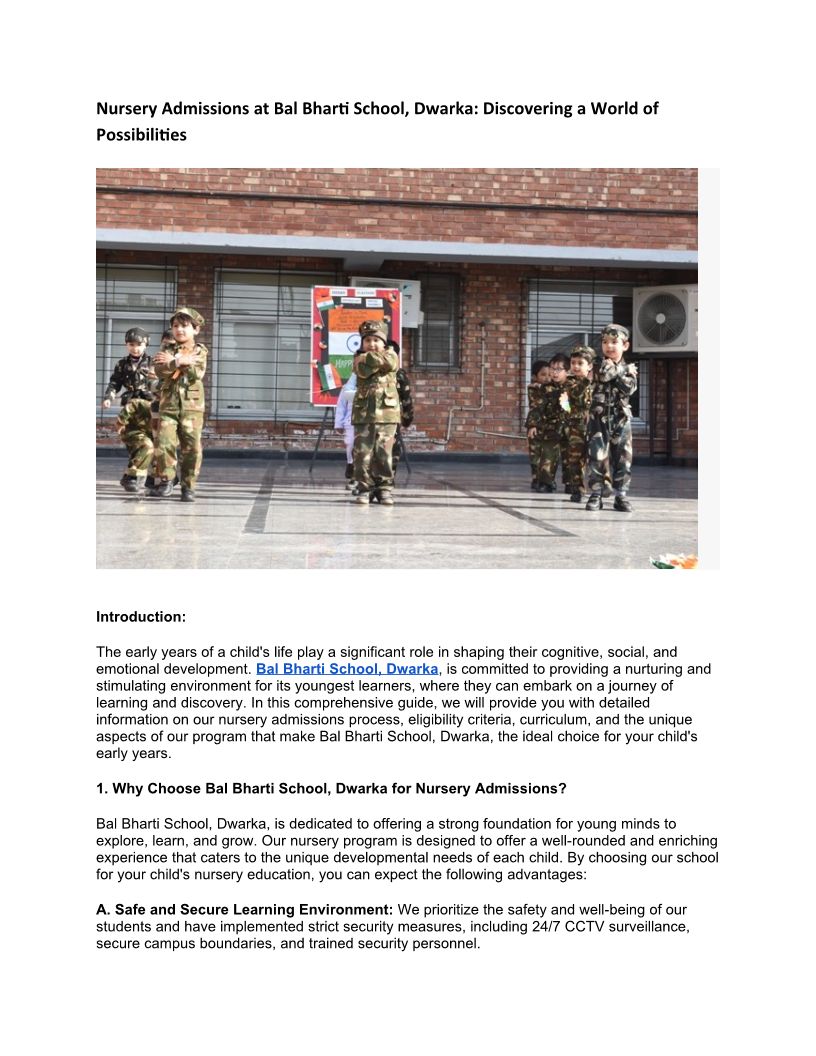 Nursery Admissions at Bal Bharti School, Dwarka: Discovering a World of Possibilities