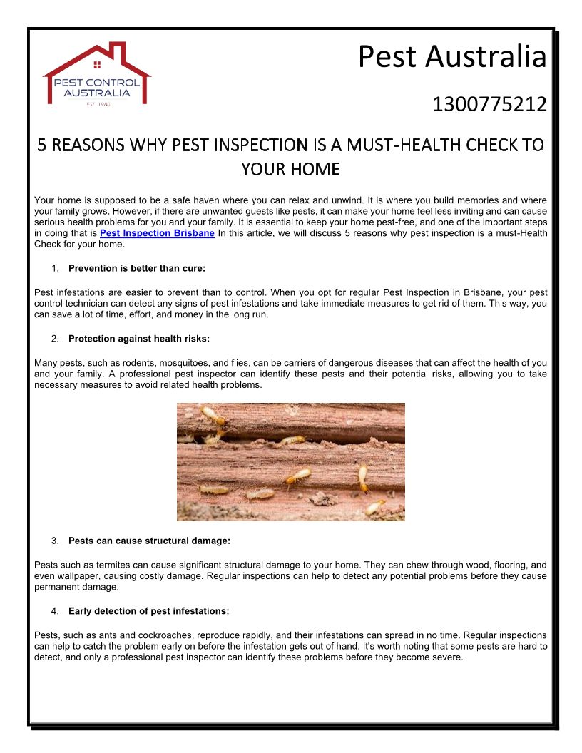 5 REASONS WHY PEST INSPECTION IS A MUST-HEALTH CHECK TO YOUR HOME