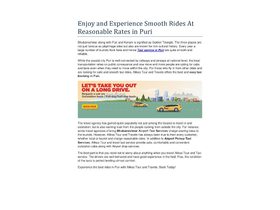 Enjoy and Experience Smooth Rides At Reasonable Rates in Puri