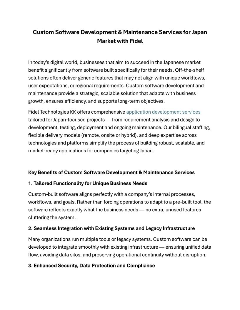 Custom Software Development & Maintenance Services for Japan Market with Fidel