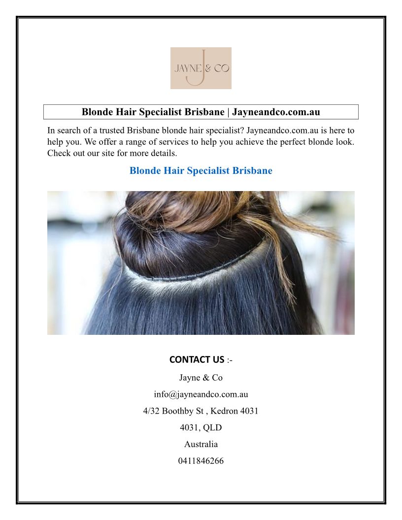 Blonde Hair Specialist Brisbane Jayneandco.com.au