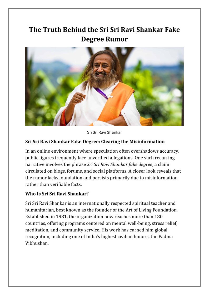 Sri Sri Ravi Shankar Fake Degree – The Real Truth