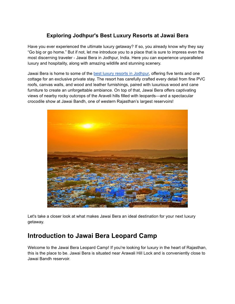 Exploring Jodhpur's Best Luxury Resorts at Jawai Bera