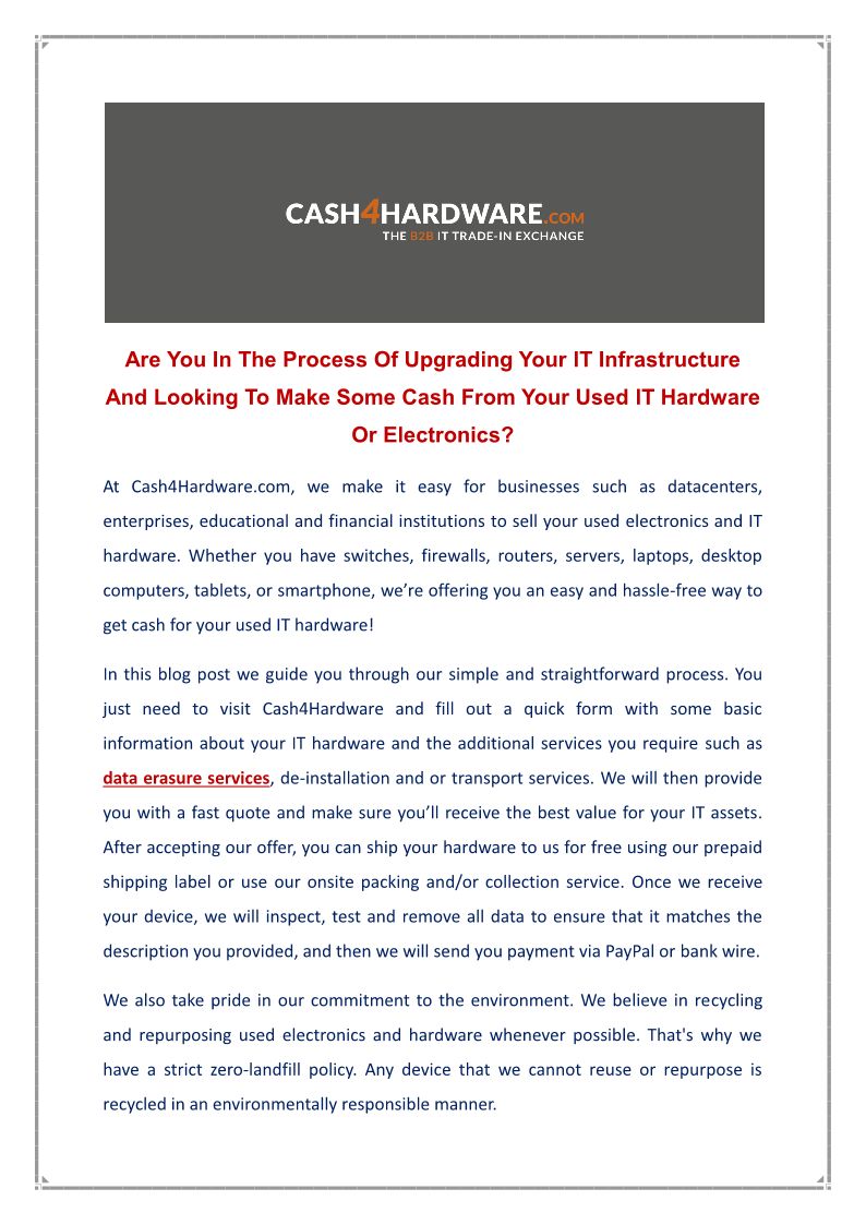 Are You In The Process Of Upgrading Your IT Infrastructure And Looking To Make Some Cash From Your Used IT Hardware Or Electronics