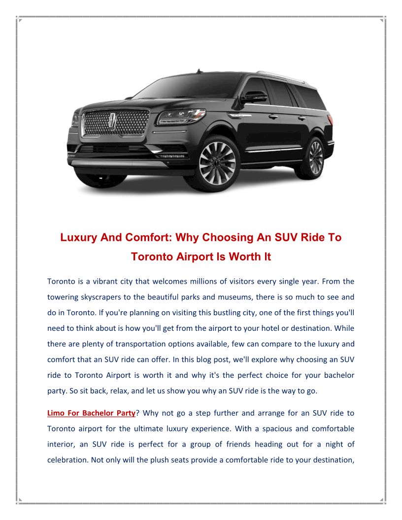 Luxury And Comfort Why Choosing An SUV Ride To Toronto Airport Is Worth It