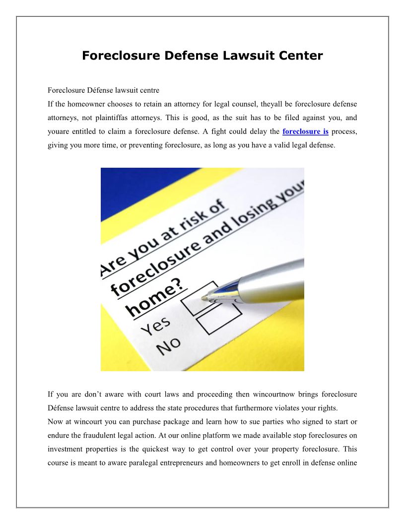 Sheriff Sale | Defense Lawsuit | Foreclosure- WinInCourtN