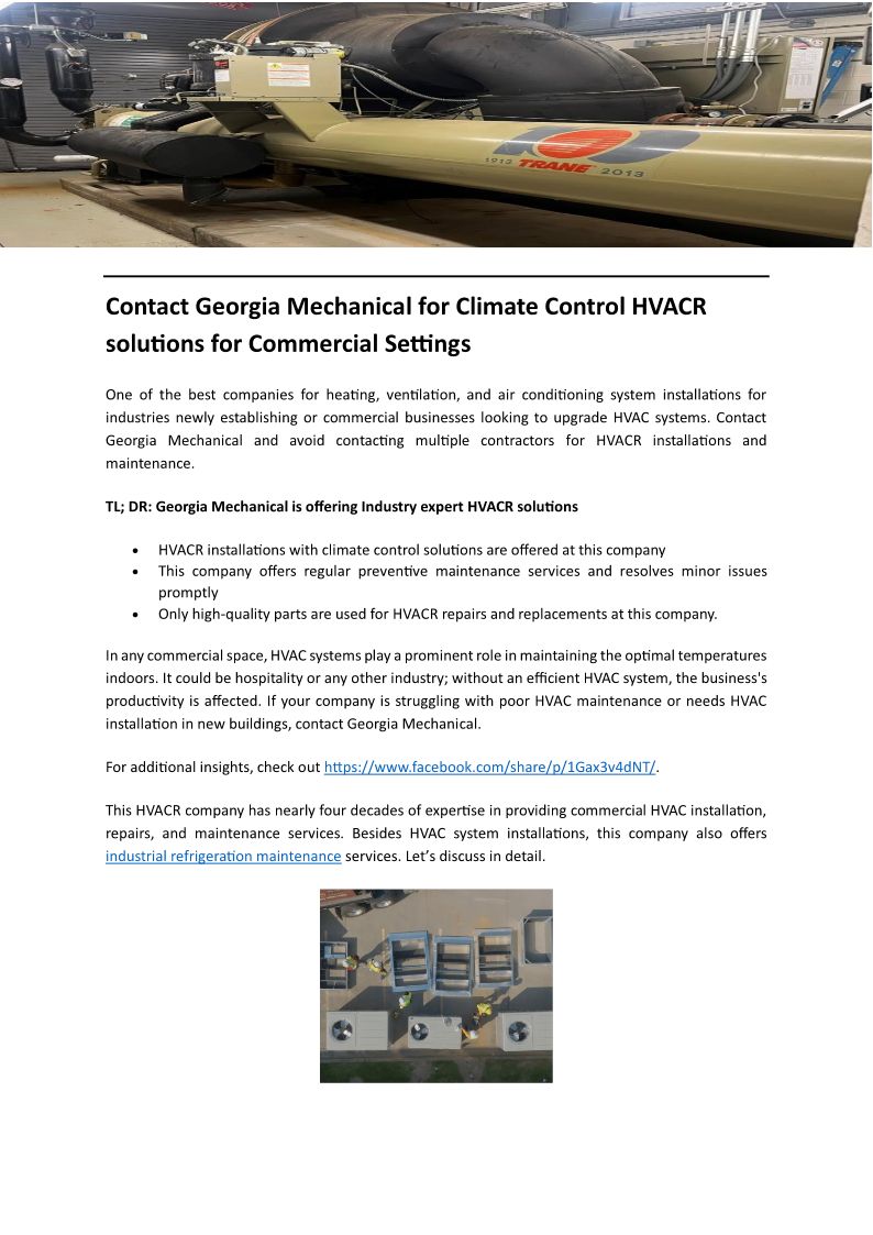 Contact Georgia Mechanical for Climate Control HVACR solutions for Commercial Settings