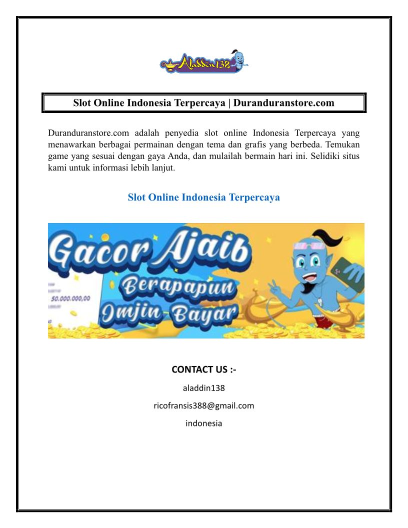 Slot Online Indonesia Terpercaya Duranduranstore.com