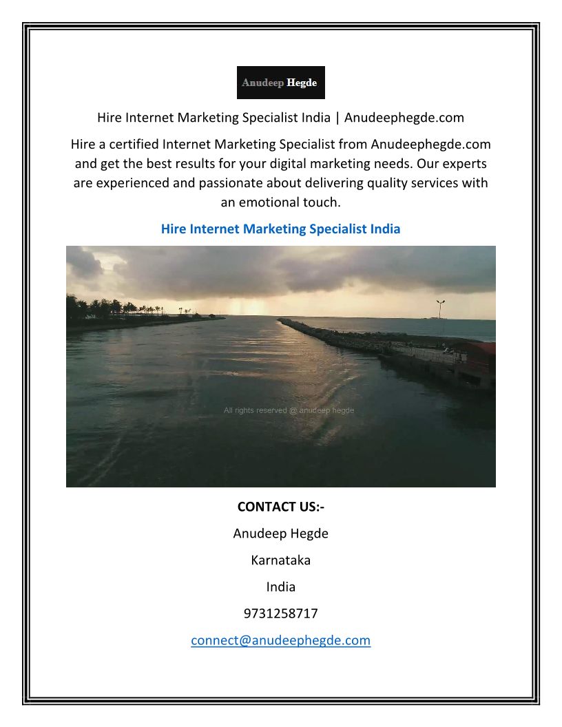 Hire Internet Marketing Specialist India | Anudeephegde.com