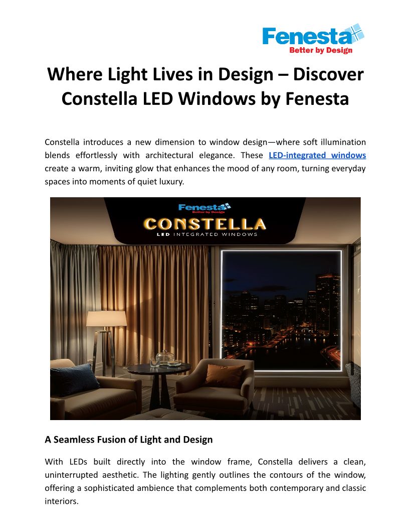 Where Light Lives in Design – Discover Constella LED Windows by Fenesta