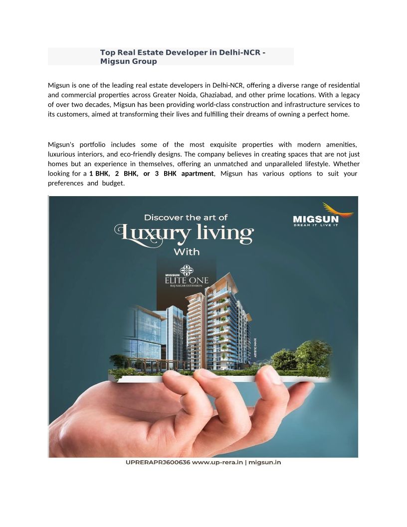 Top Real Estate Developer in Delhi-NCR - Migsun Group