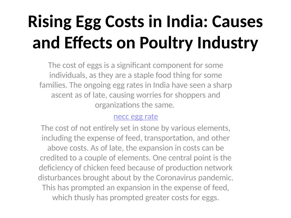 Rising Egg Costs in India: Causes and Effects on Poultry Industry