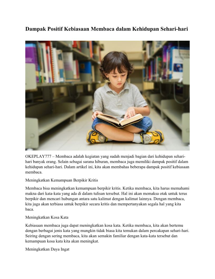 Dampak Positif Kebiasaan Membaca dalam Kehidupan Sehari-hari