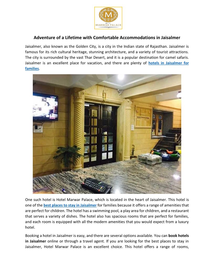 Adventure of a Lifetime with Comfortable Accommodations in Jaisalmer