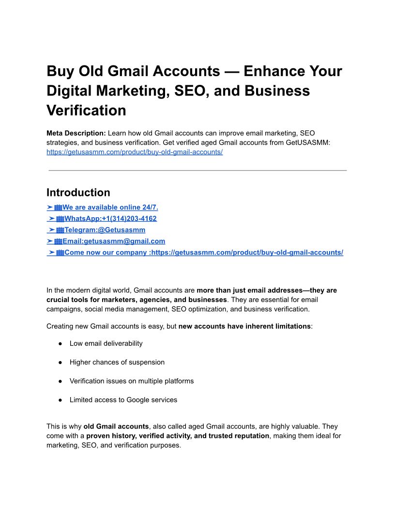 Buy Old Gmail Accounts - 100% PVA Old & Best Quality (1)