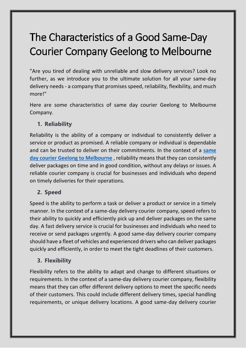 The Characteristics of A Good Same-Day Courier Company Geelong to Melbourne