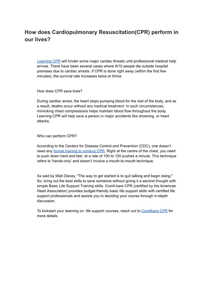 How does Cardiopulmonary Resuscitation(CPR) perform in our lives_