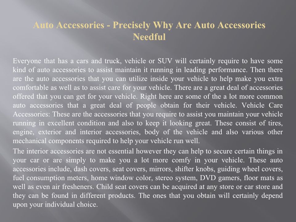 Auto Accessories - Precisely Why Are Auto Accessories Needful