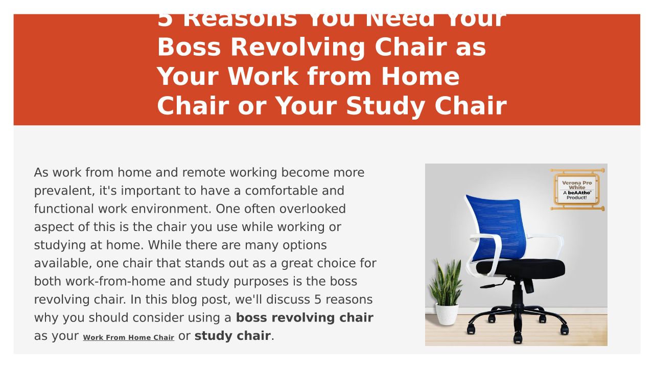 5 Reasons You Need Your Boss Revolving Chair as Your Work from Home Chair or Your Study Chair