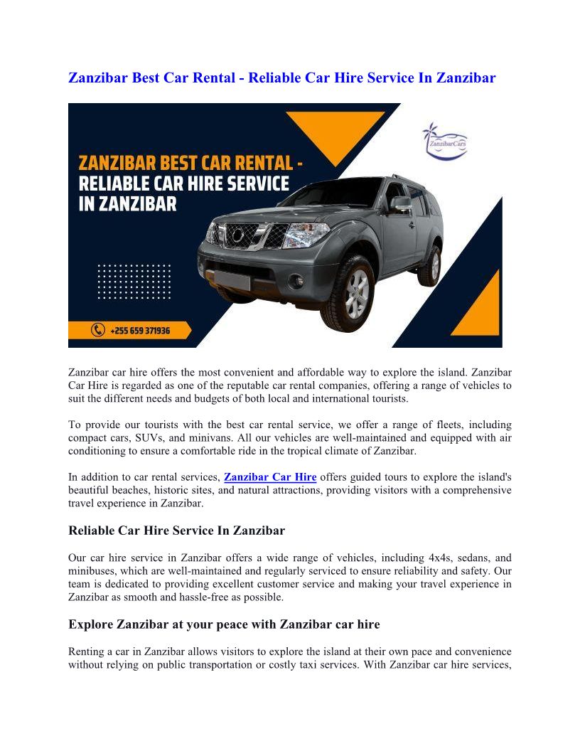 Zanzibar Best Car Rental - Reliable Car Hire Service In Zanzibar