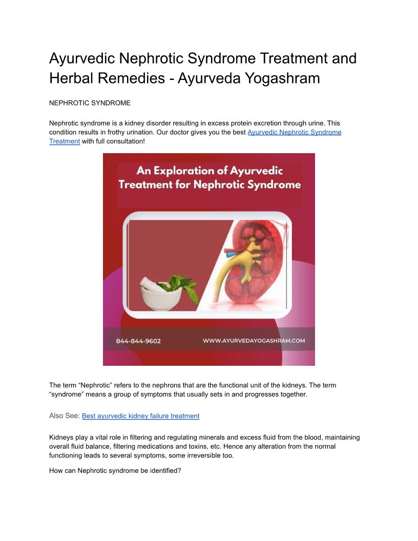 Ayurvedic Nephrotic Syndrome Treatment and Herbal Remedies - Ayurveda Yogashram