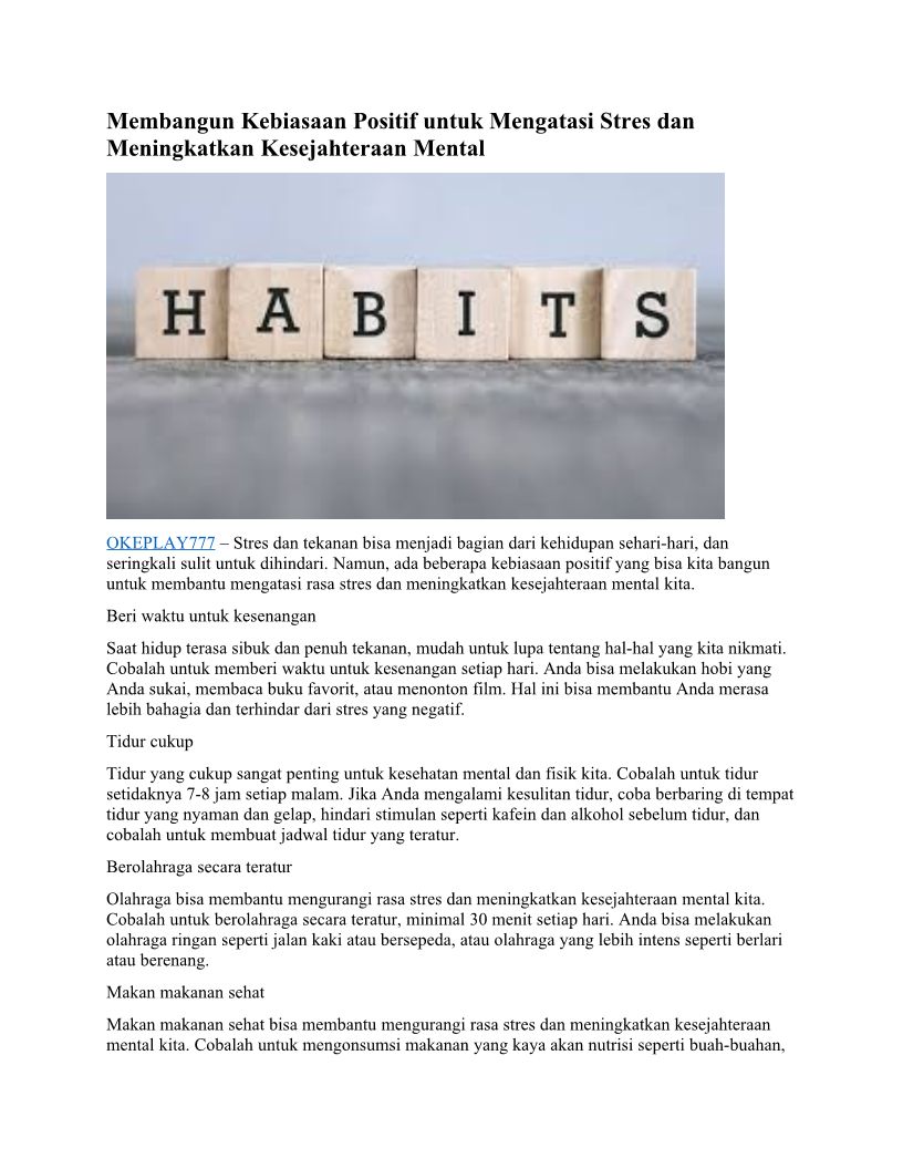 Membangun Kebiasaan Positif untuk Mengatasi Stres dan Meningkatkan Kesejahteraan Mental