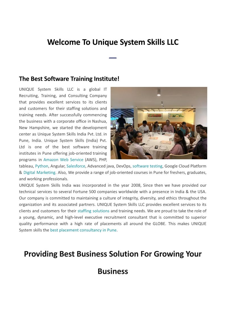 Best Software Training Institute in Pune| IT Training : Unique System Skills