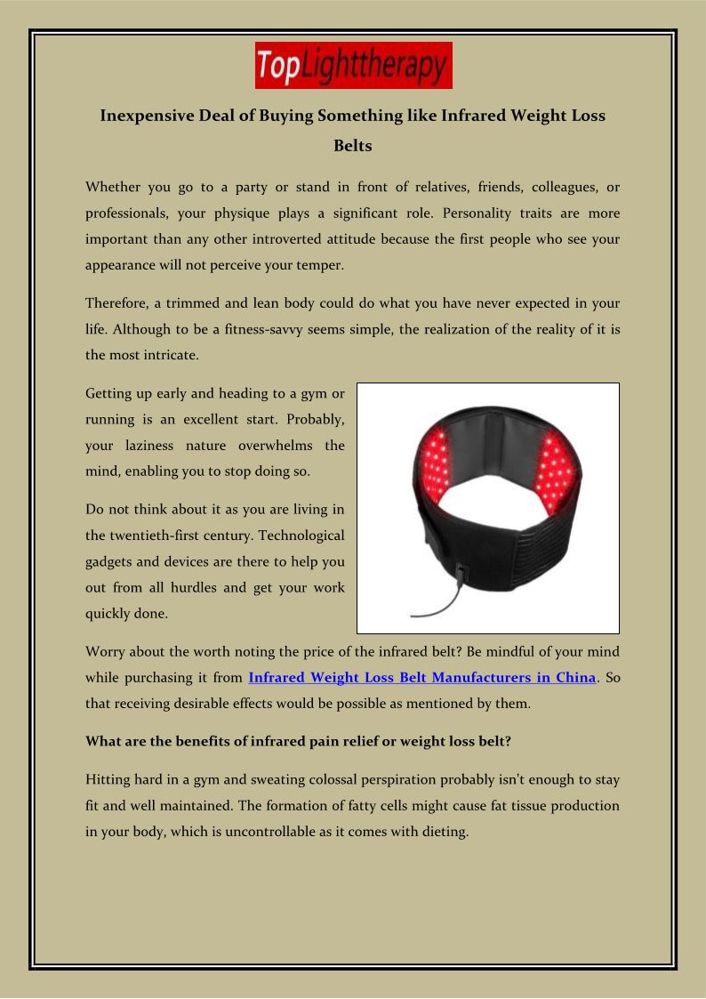 Inexpensive Deal of Buying Something like Infrared Weight Loss Belts