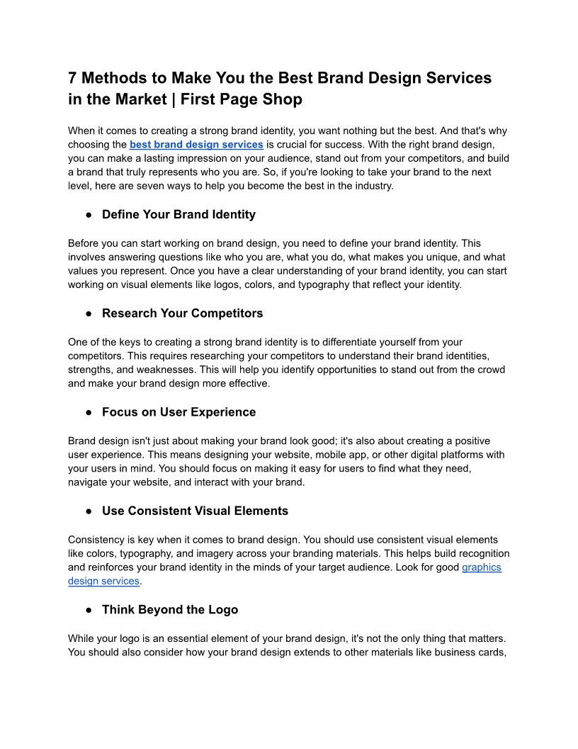 7 Methods to Make You the Best Brand Design Services in the Market | First Page Shop