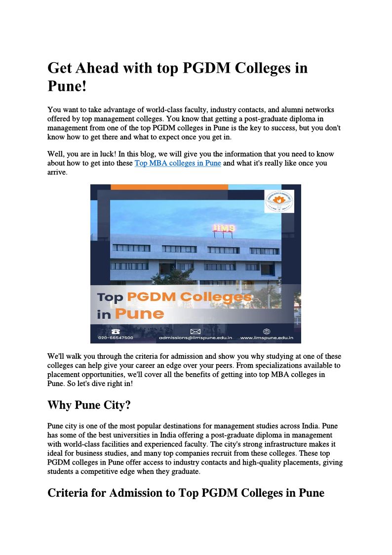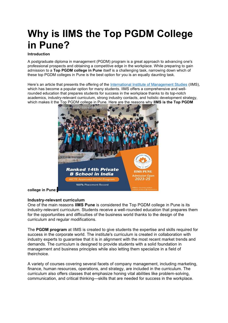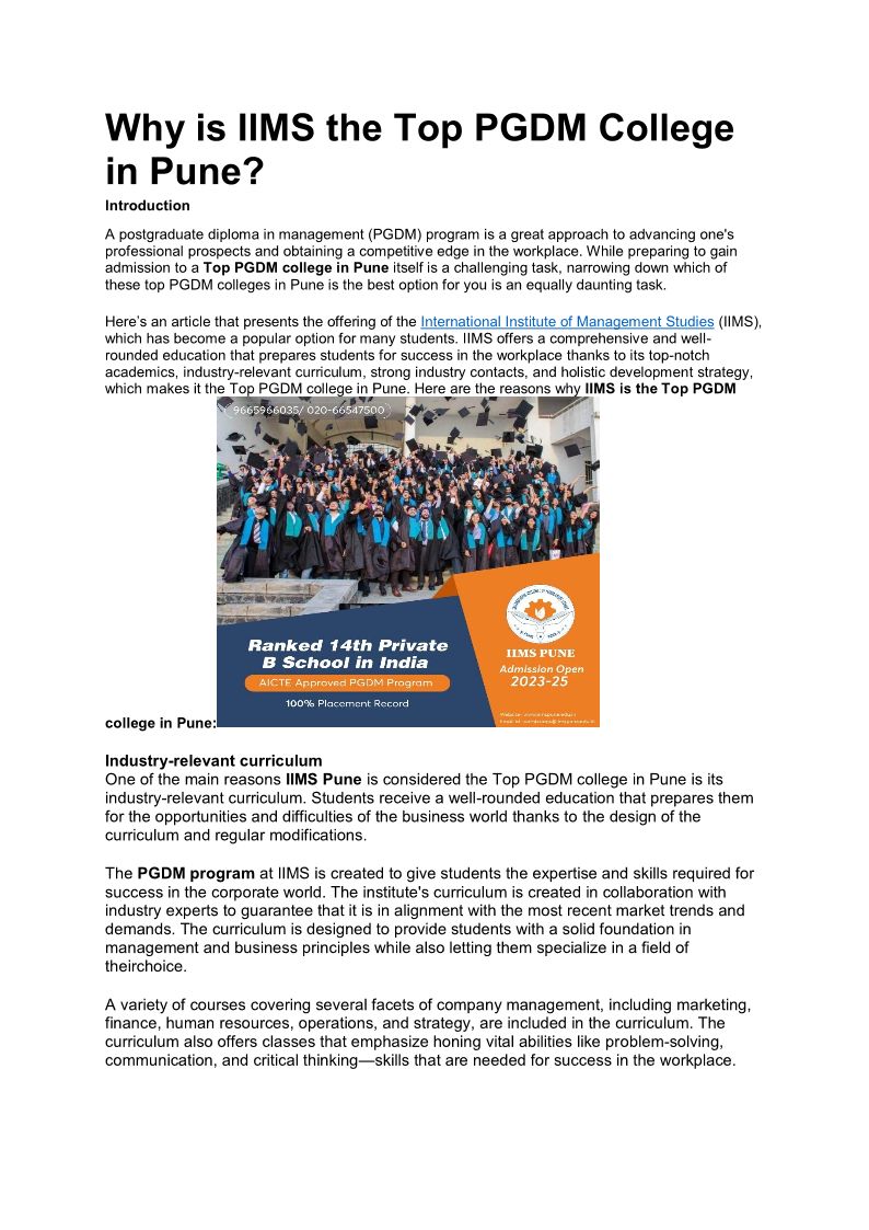 Get Ahead with top PGDM Colleges in Pune! | IIMS Pune