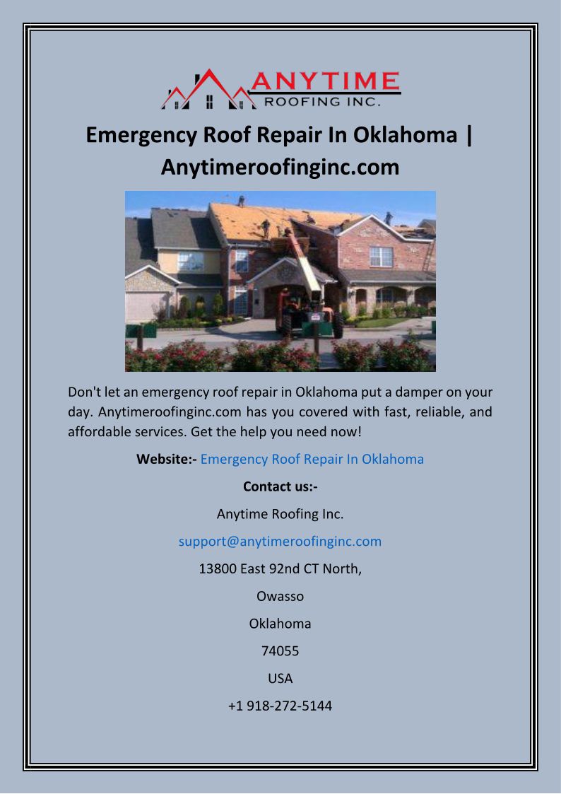 Emergency Roof Repair In Oklahoma Anytimeroofinginc