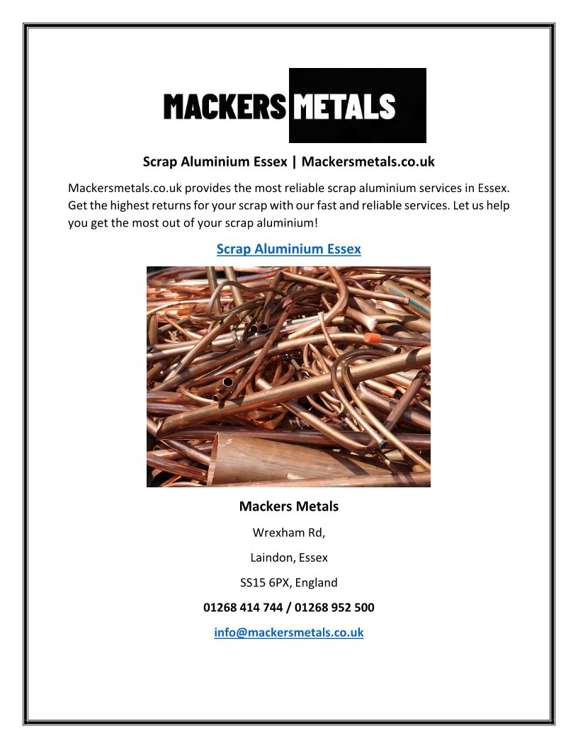 Scrap Aluminium Essex Mackersmetals.co.uk