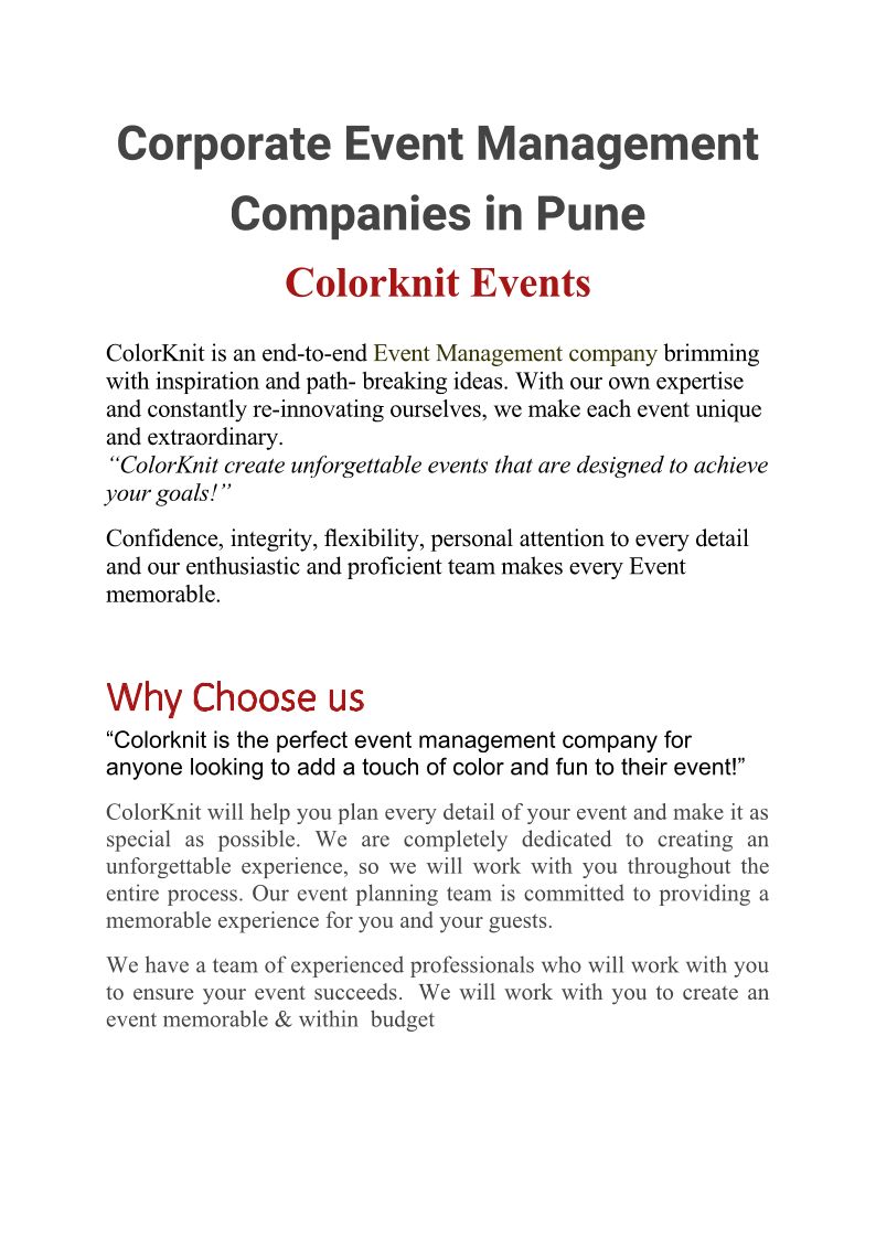 Event Management Company in Pune - Colors knit creations