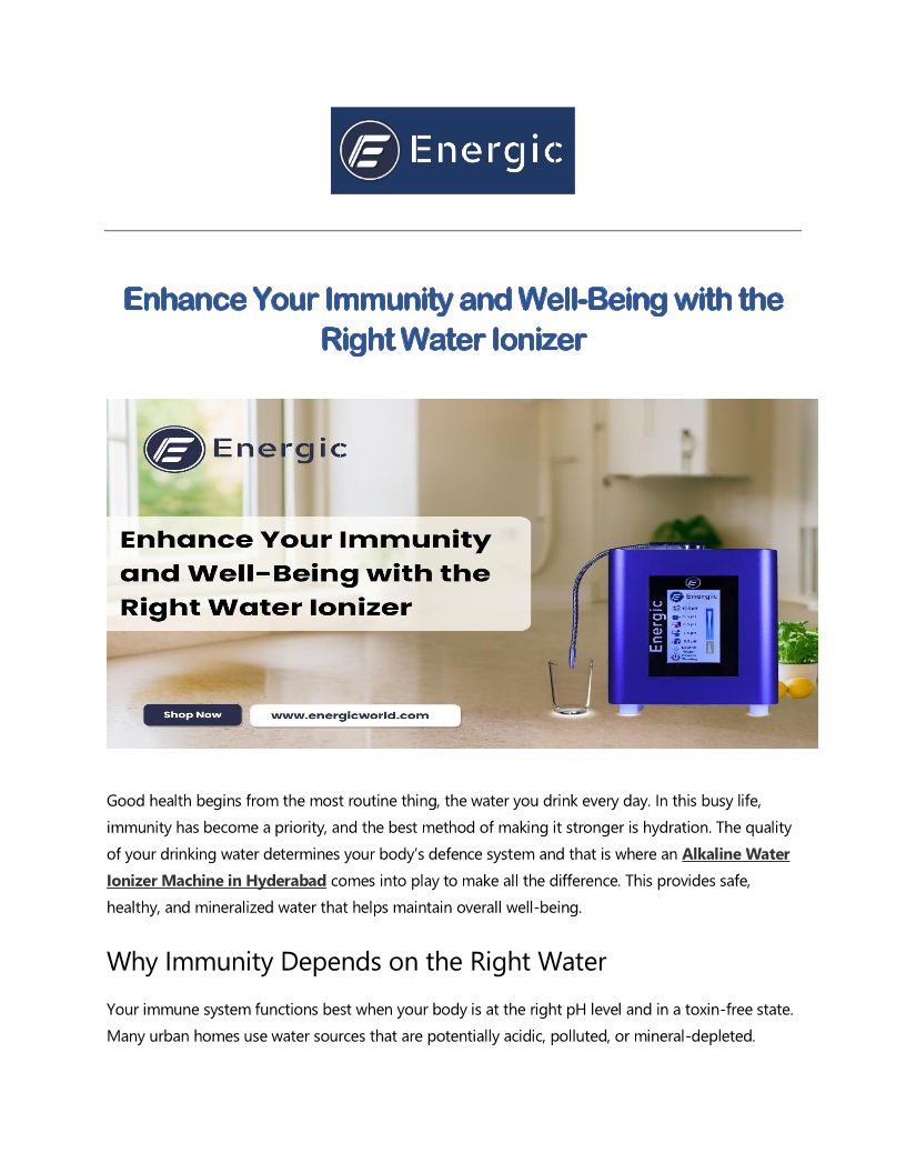 Enhance Your Immunity and Well-Being with the Right Water Ionizer