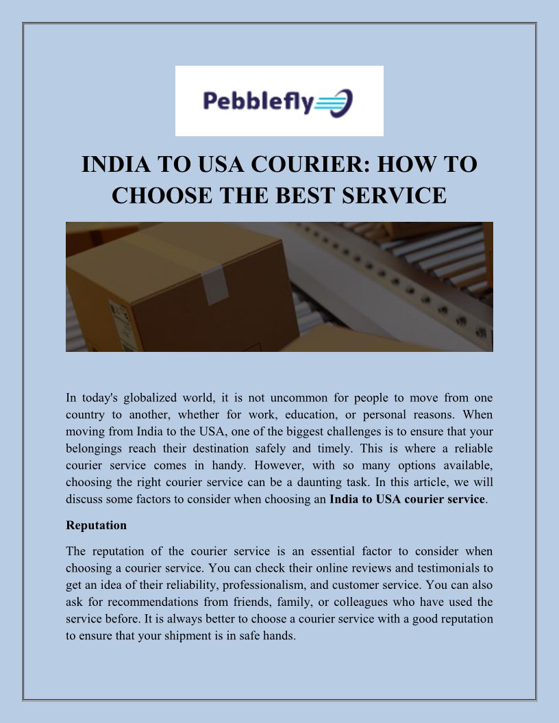 India to USA Courier How to Choose the Best Service