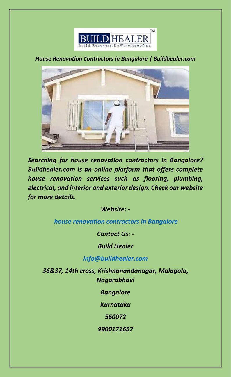 House Renovation Contractors in Bangalore Buildhealer