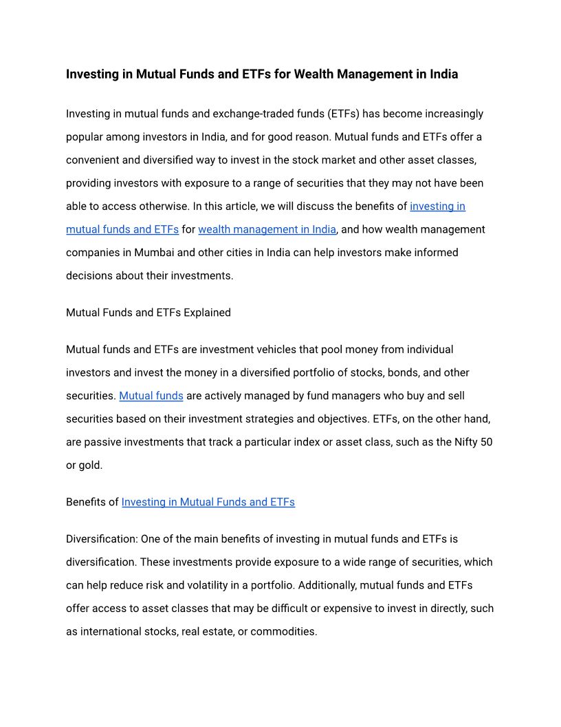Investing in Mutual Funds and ETFs for Wealth Management in India