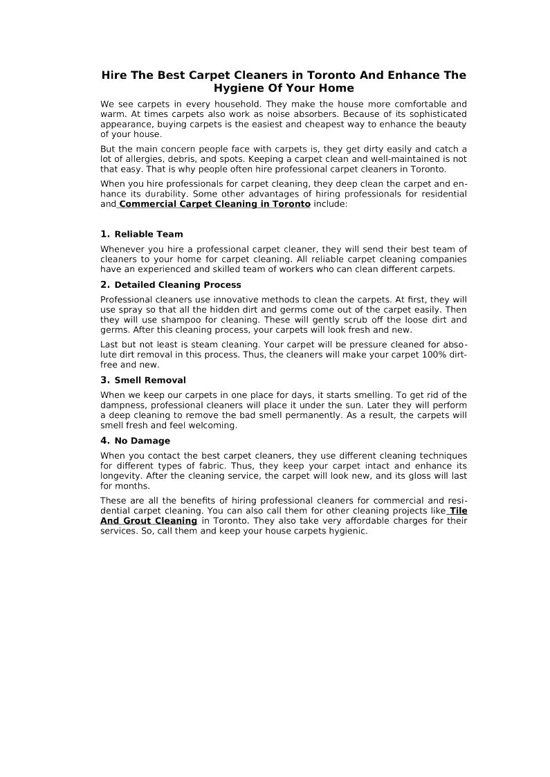 Hire the Best Carpet Cleaners in Toronto and Enhance The Hygiene of Your Home