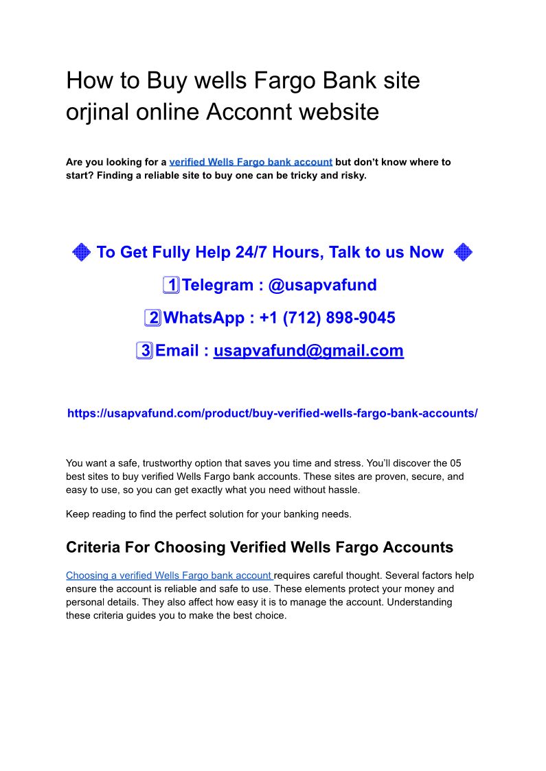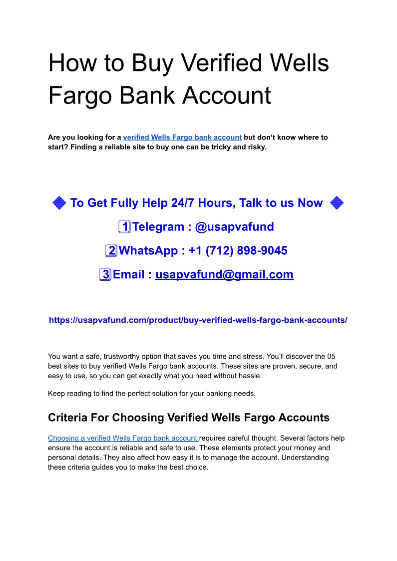 How to Buy Verified Wells Fargo Bank Account