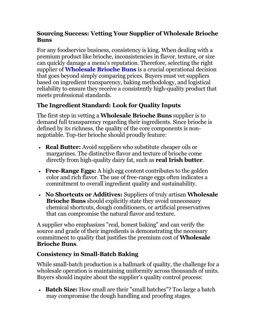 Sourcing Success: Vetting Your Supplier of Wholesale Brioche Buns