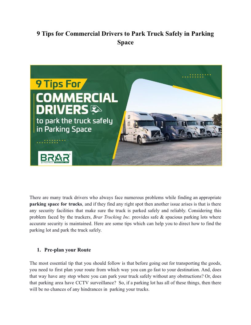 9 Tips for Commercial Drivers to Park Truck Safely in parking Space